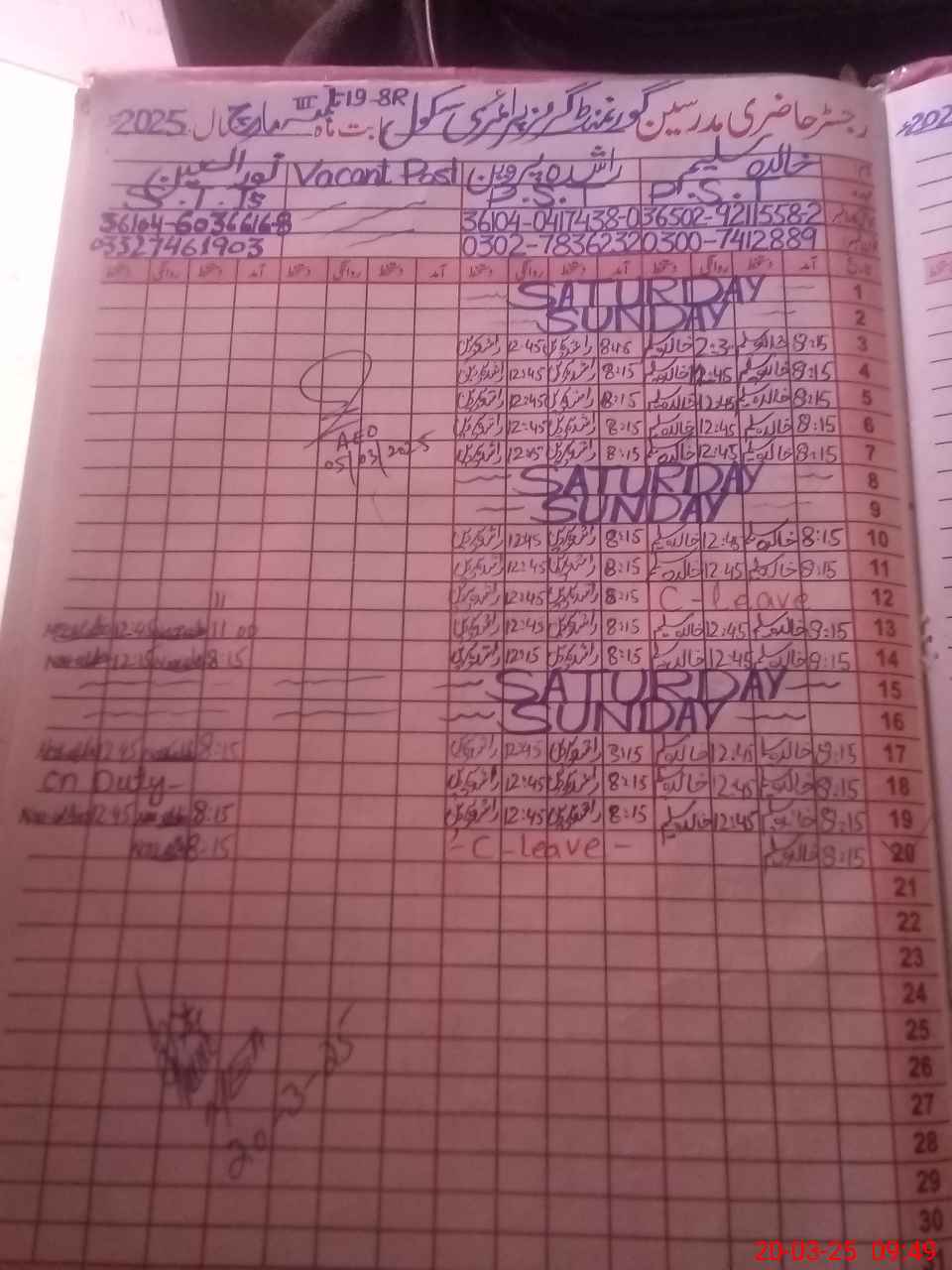 | Name: KH**** SA**** Designation: (School Headmaster's/Headmistress's) PST Phone/Cell Number: 03**** |