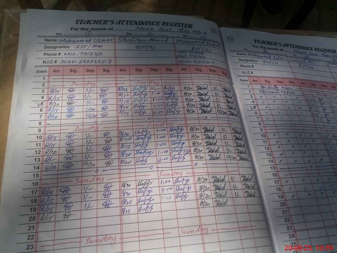 | Name: Sh**** Ah**** Designation: (School Headmaster's/Headmistress's) EST Phone/Cell Number: 03**** |