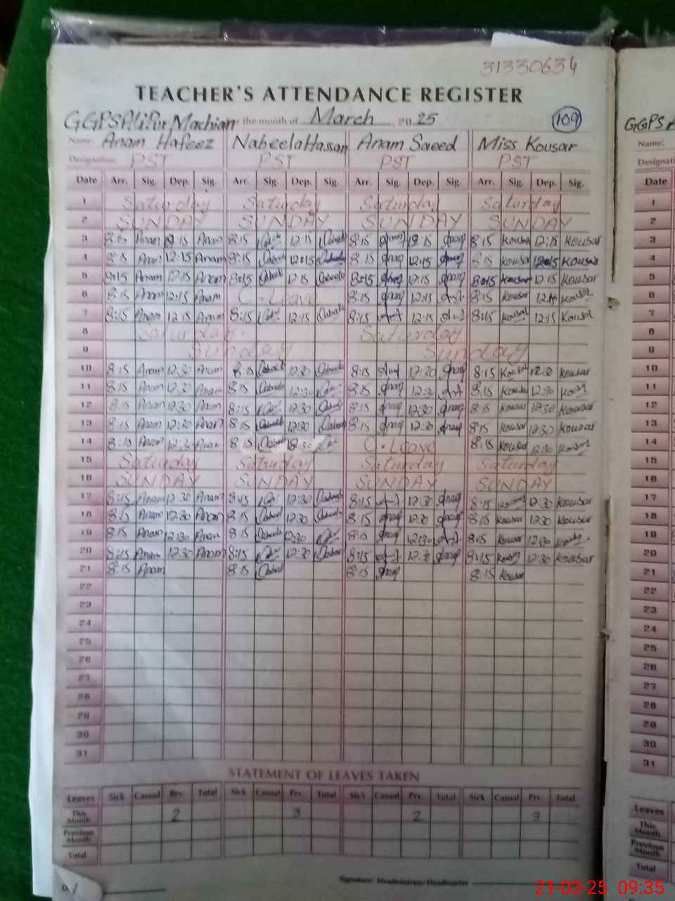 | EMIS Code: 31330634 | Name of School: GGPS ALI PUR MACHIAN | |||