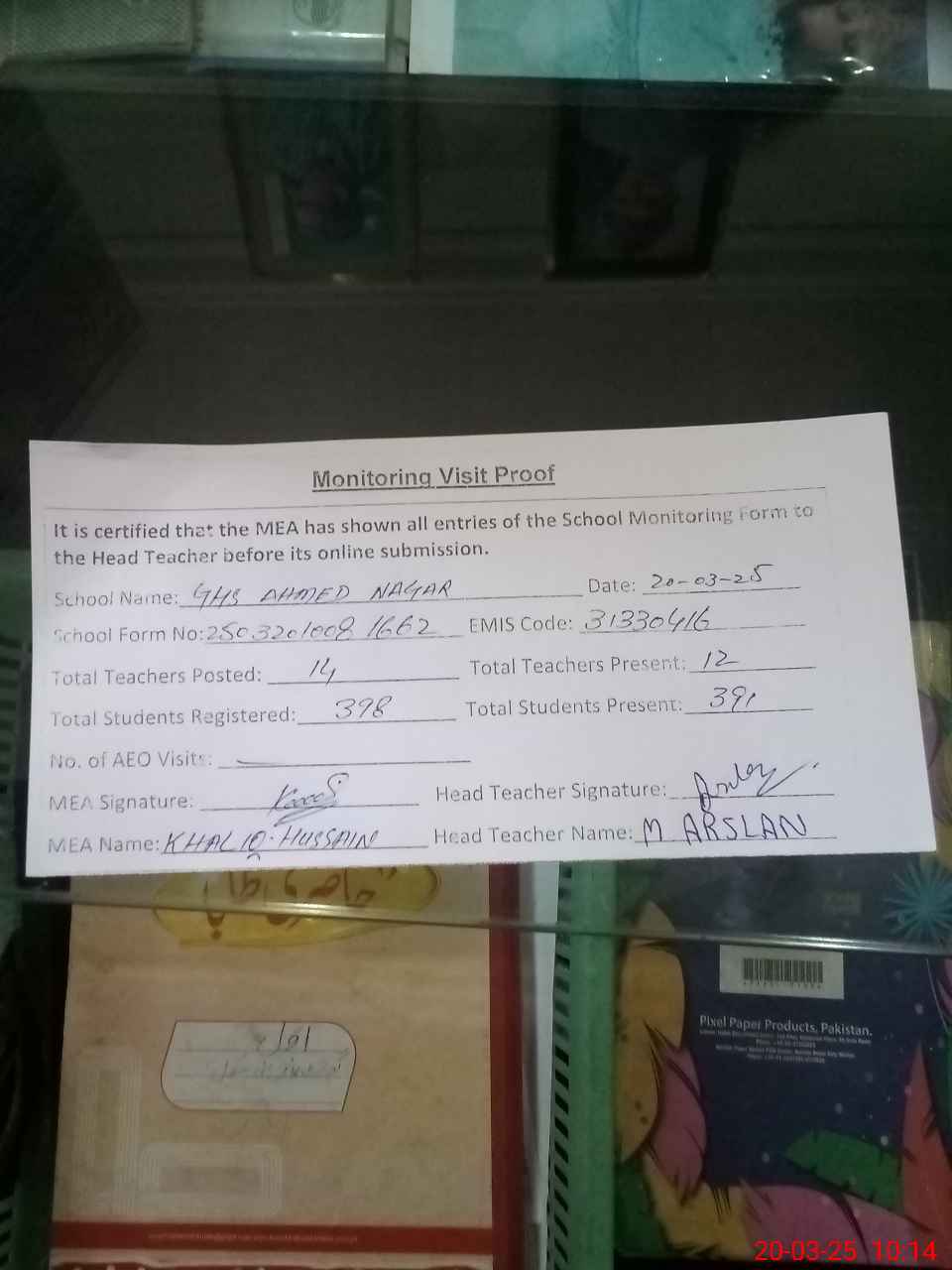 | EMIS Code: 31330416 | Name of School: GHS AHMED NAGAR | |||