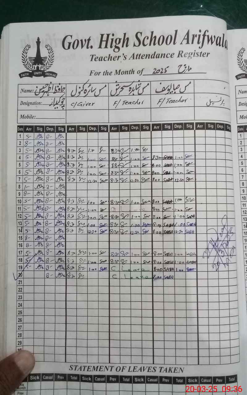| 36**** | Mu**** Sh**** Ra**** | 3 | 1 | 0 | 0 | 0 | 0 | 0 | 0 | 0 | 0 | 0 | Exam Duty |