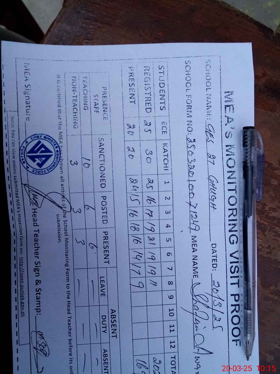| EMIS Code: 36410079 | Name of School: GES 27 GHAGH, P/O ADDA 25 PUL, ABDUL HAKIM | |||