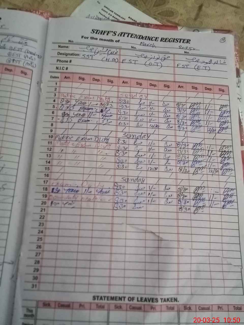 | 31**** | Zi**** UlHa**** | 2 | 2 | 0 | 0 | 0 | 0 | 0 | 0 | 0 | 0 | 0 | Exam Duty |