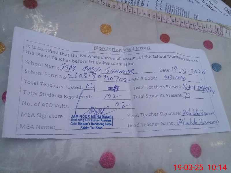 | EMIS Code: 31310490 | Name of School: GGPS BASTI GHUNEER | |||