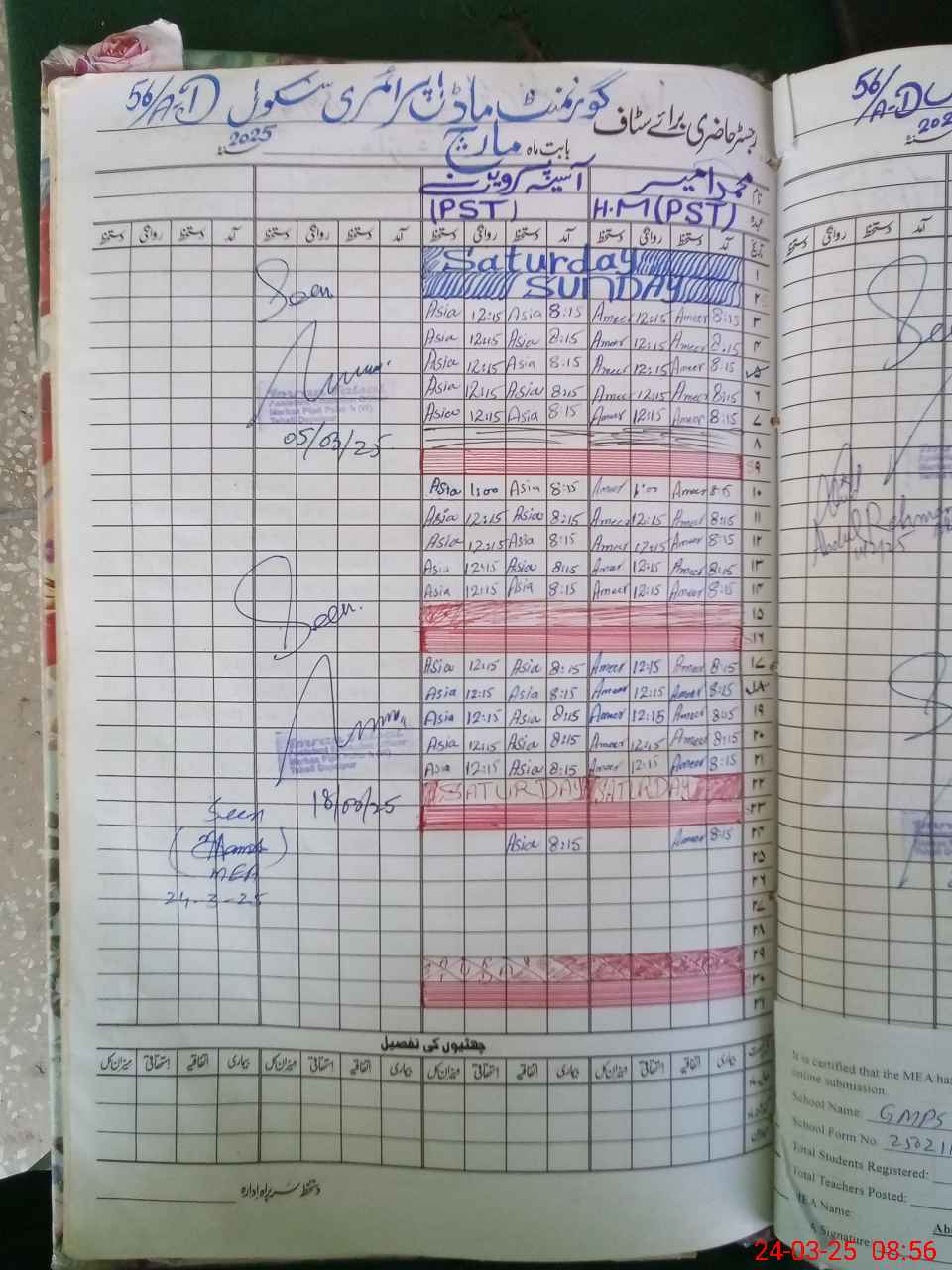 | Name: MU**** AM**** Designation: (School Headmaster's/Headmistress's) PST Phone/Cell Number: 03**** |