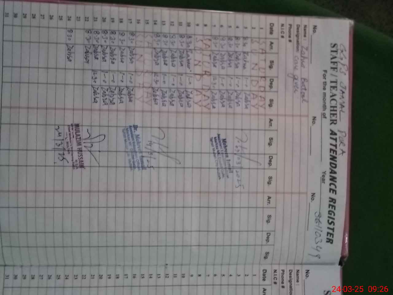 | Name: Ma**** Sa**** Designation: (School Headmaster's/Headmistress's) HEADMISTRESS Phone/Cell Number: 03**** |
