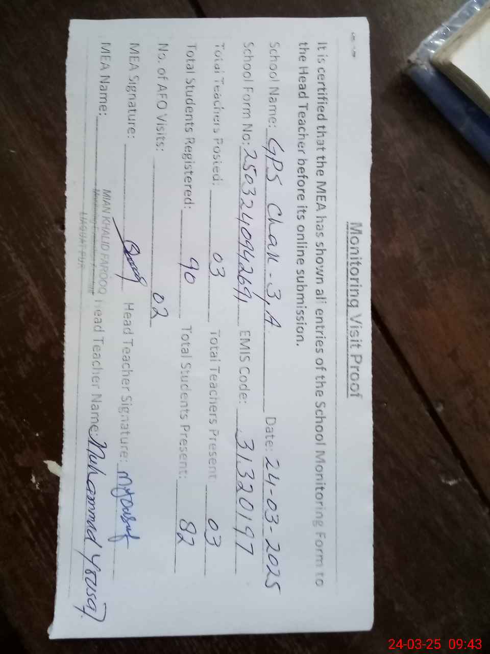 | EMIS Code: 31320197 | Name of School: GPS CHAK 3/A | |||