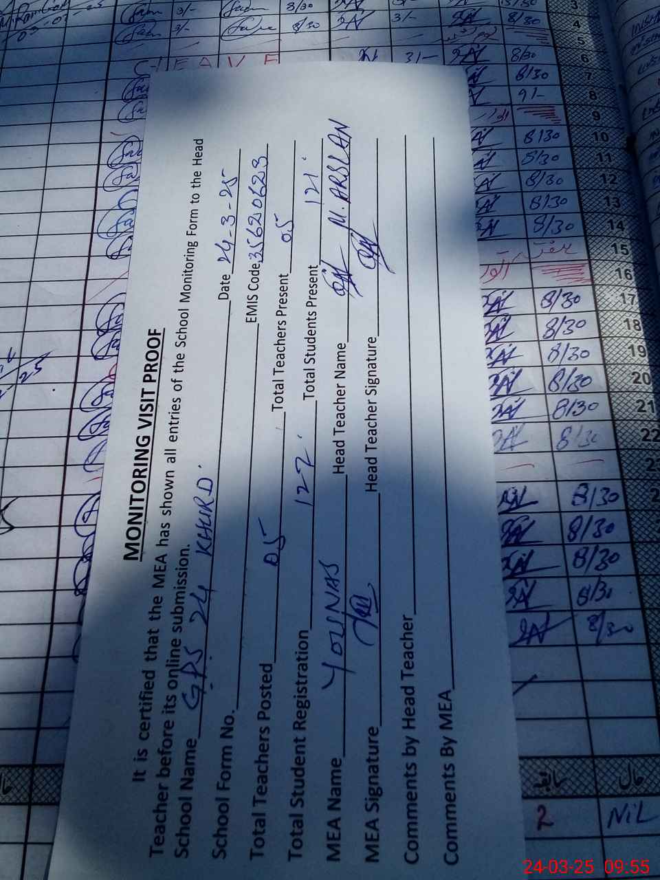 | EMIS Code: 35620623 | Name of School: GPS CHAK NO. 24 KHURD | |||