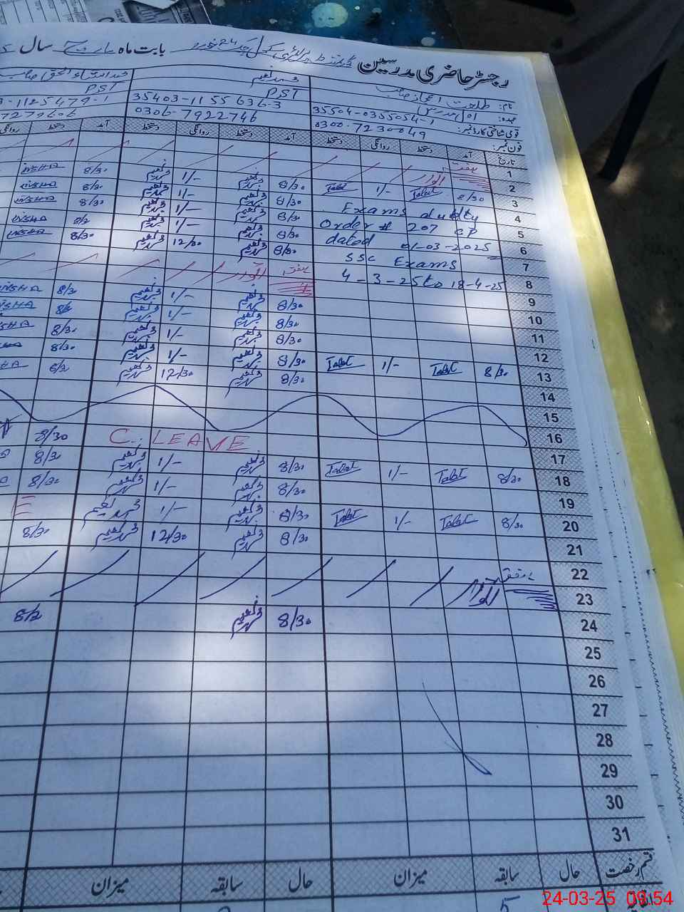| Leave | Duty | Absent | Maternity | Medical | Ex- Pak |