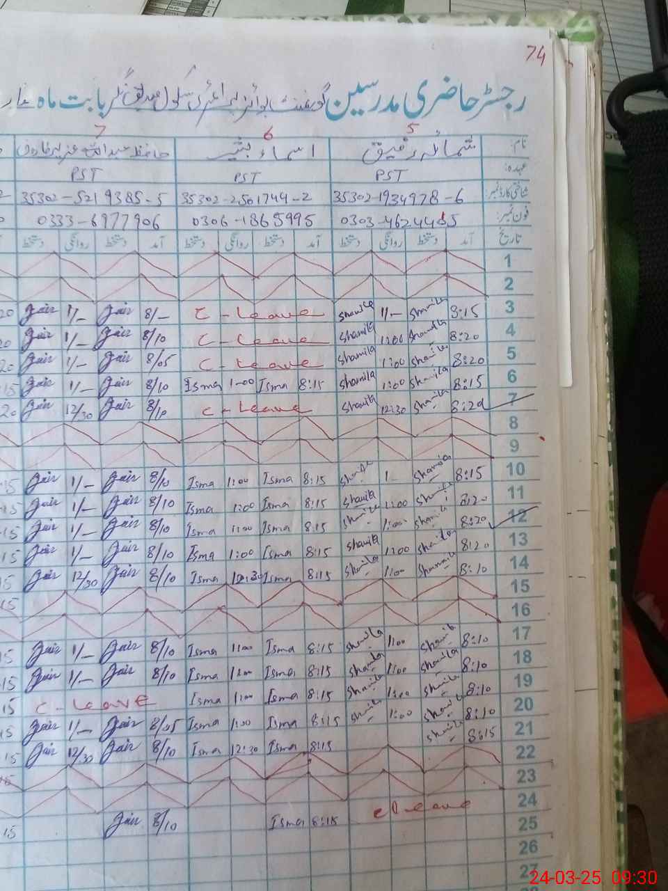 | Name: SY**** ZA**** HU**** SH**** Designation: (School Headmaster's/Headmistress's) PST Phone/Cell Number: 03**** |