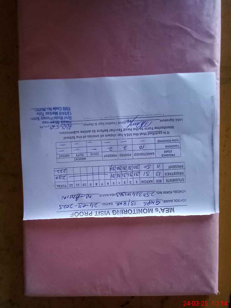 | EMIS Code: 36430394 | Name of School: GMPS 13/8-AR, P/O 20/8-R, TULAMBA | |||