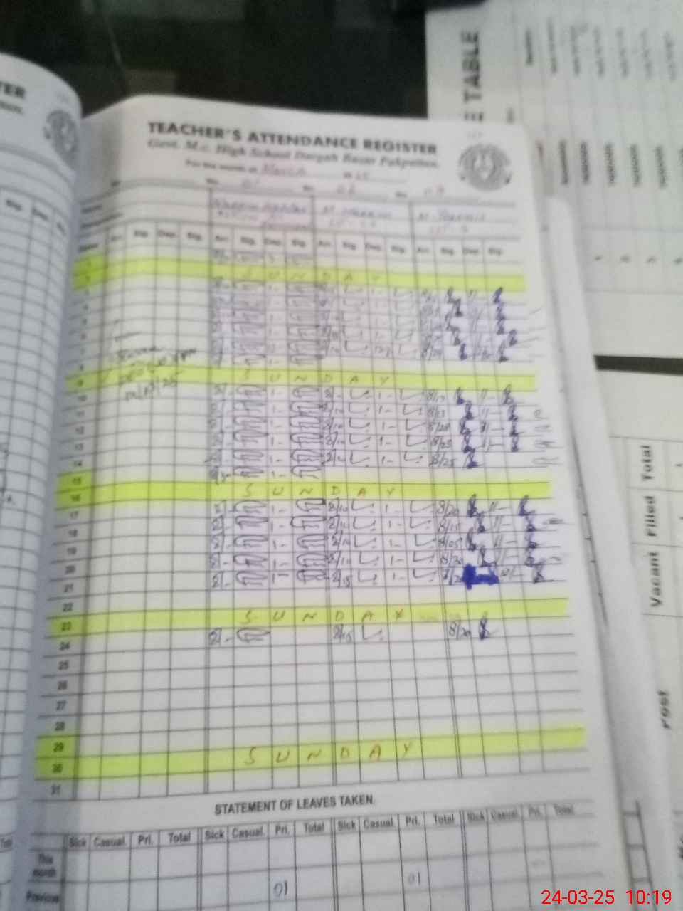 | Leave | Duty | Absent | Maternity | Medical | Ex- Pak |