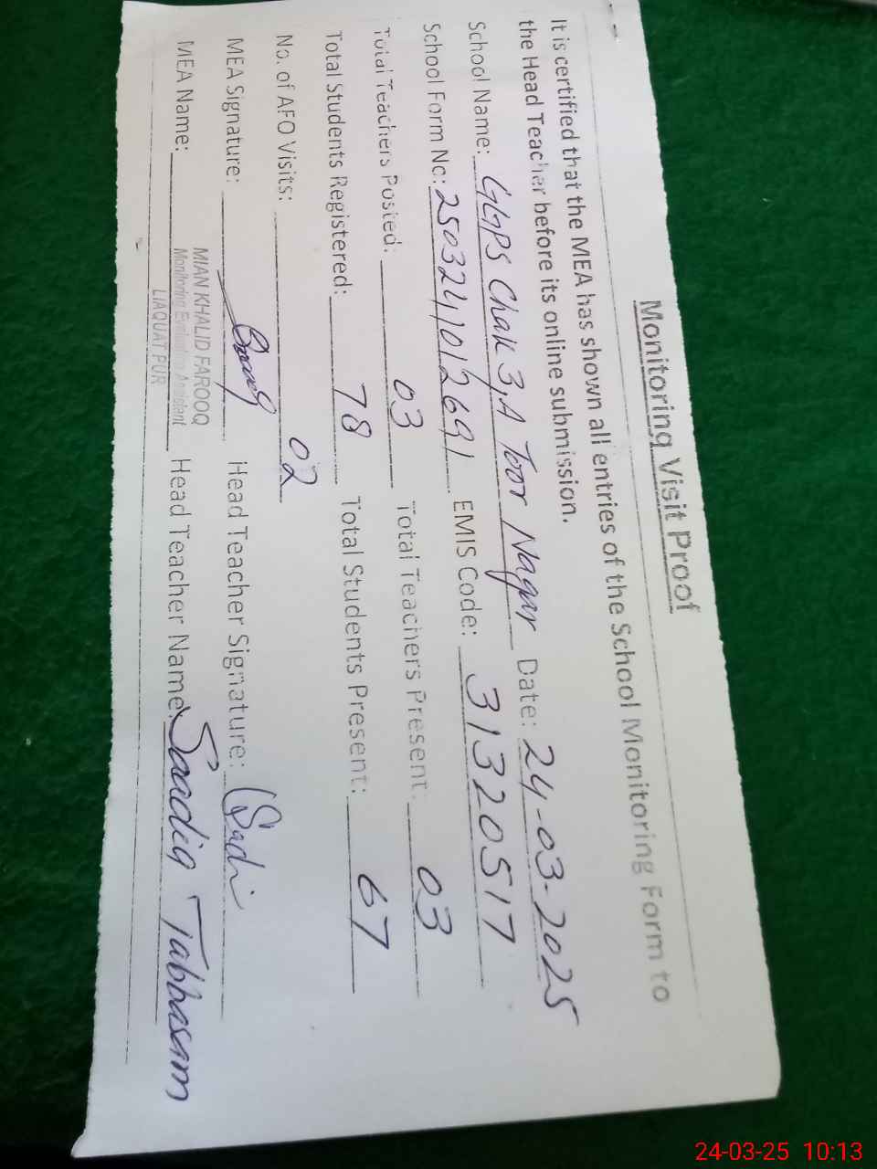 | EMIS Code: 31320517 | Name of School: GGPS CHAK NO. 3/A TOOR NAGAR | |||