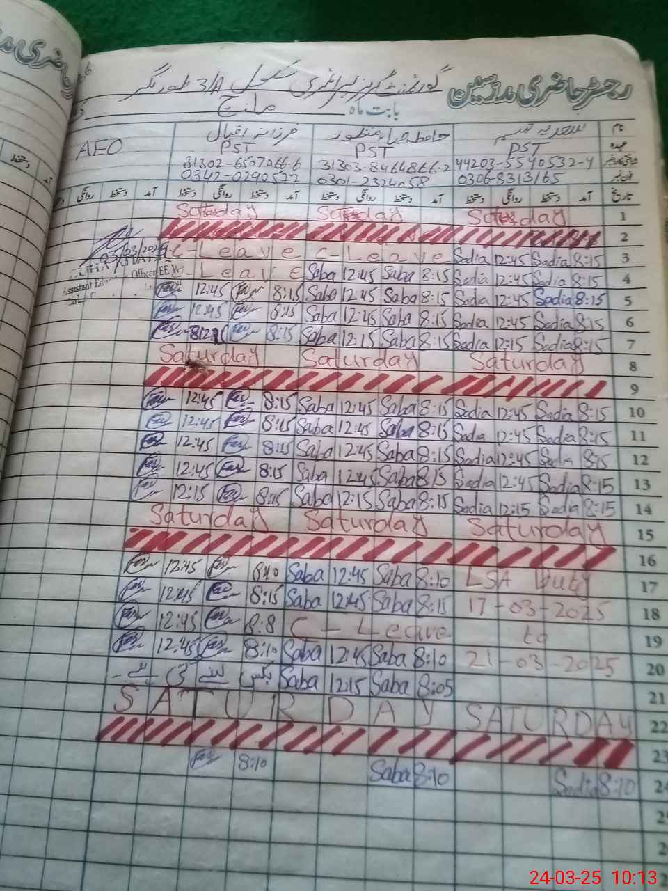 | Name: SA**** TA**** Designation: (School Headmaster's/Headmistress's) PST Phone/Cell Number: 03**** |