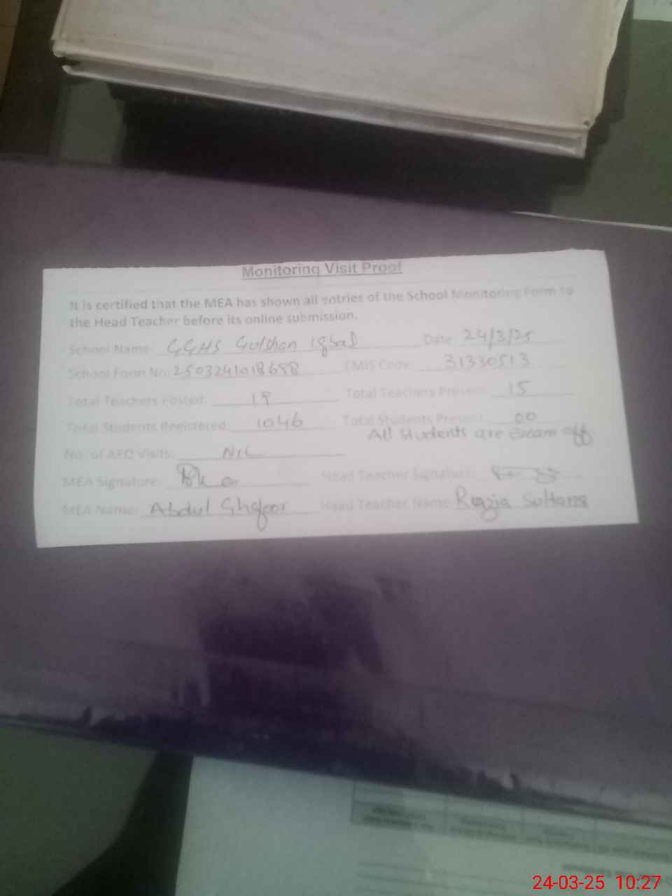 | EMIS Code: 31330513 | Name of School: GGHS GULSHAN IQBAL | |||