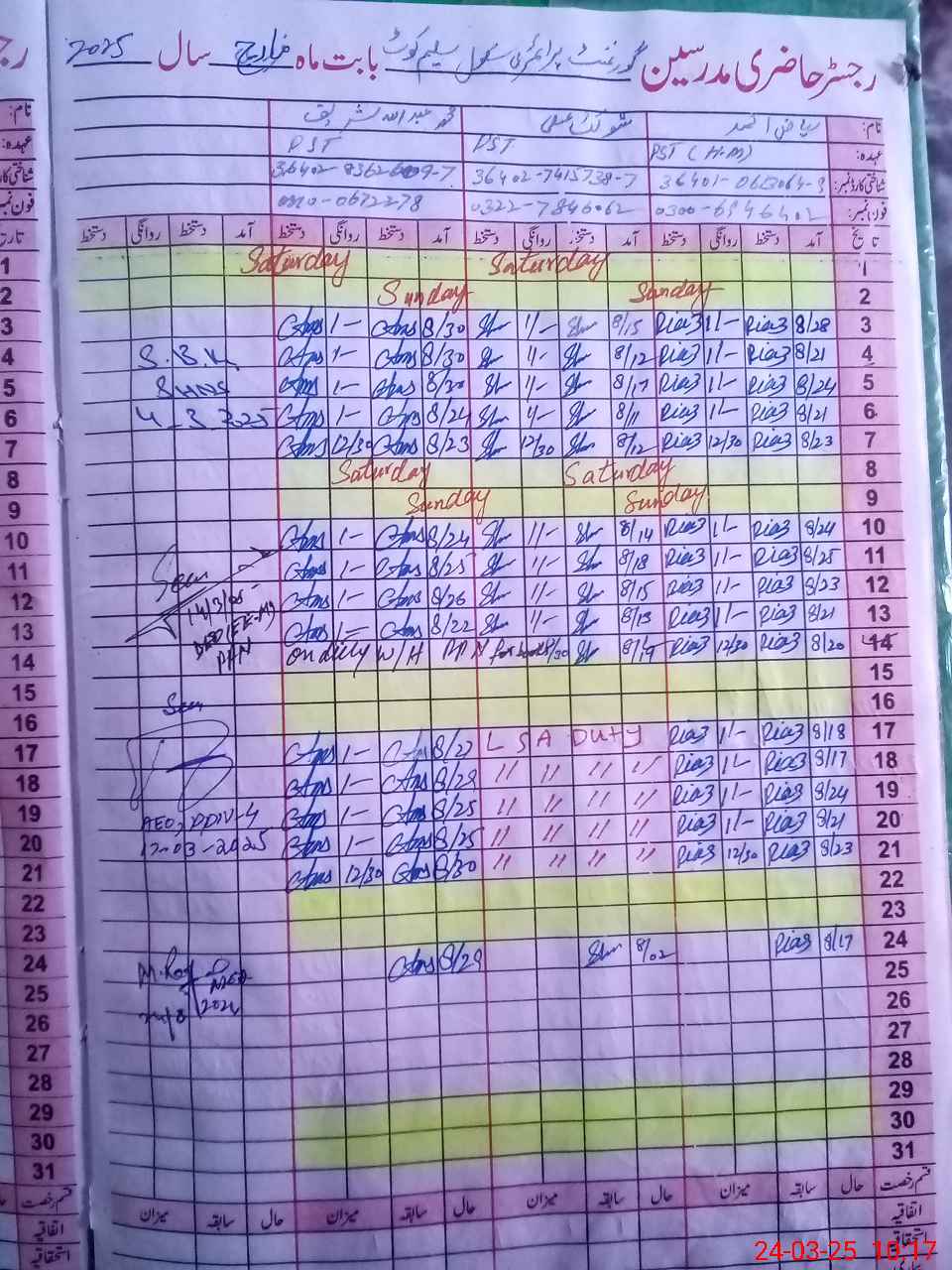 | Name: RI**** AH**** Designation: (School Headmaster's/Headmistress's) PST Phone/Cell Number: 03**** |