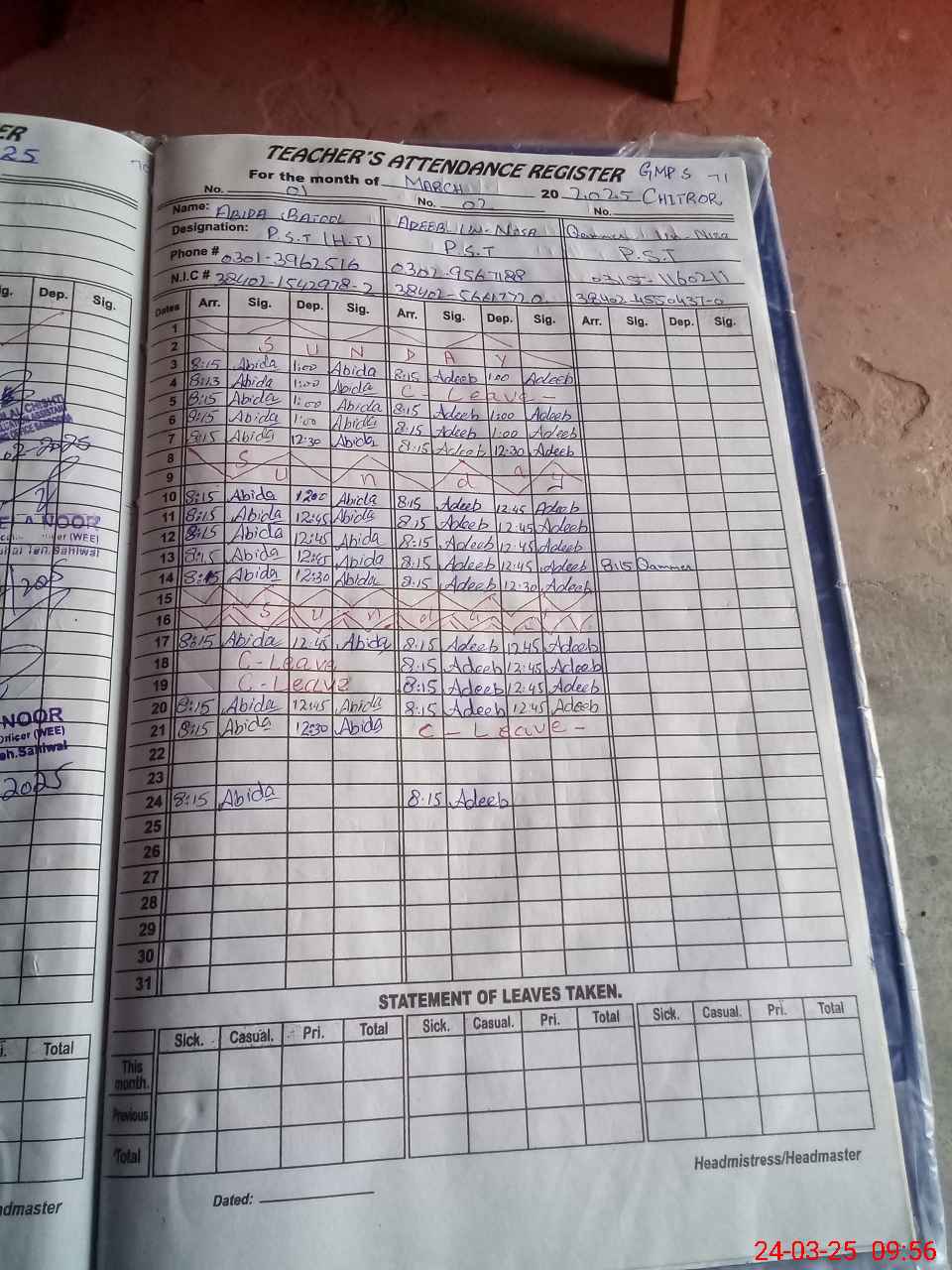 | Name: AA**** BA**** Designation: (School Headmaster's/Headmistress's) PST Phone/Cell Number: 03**** |