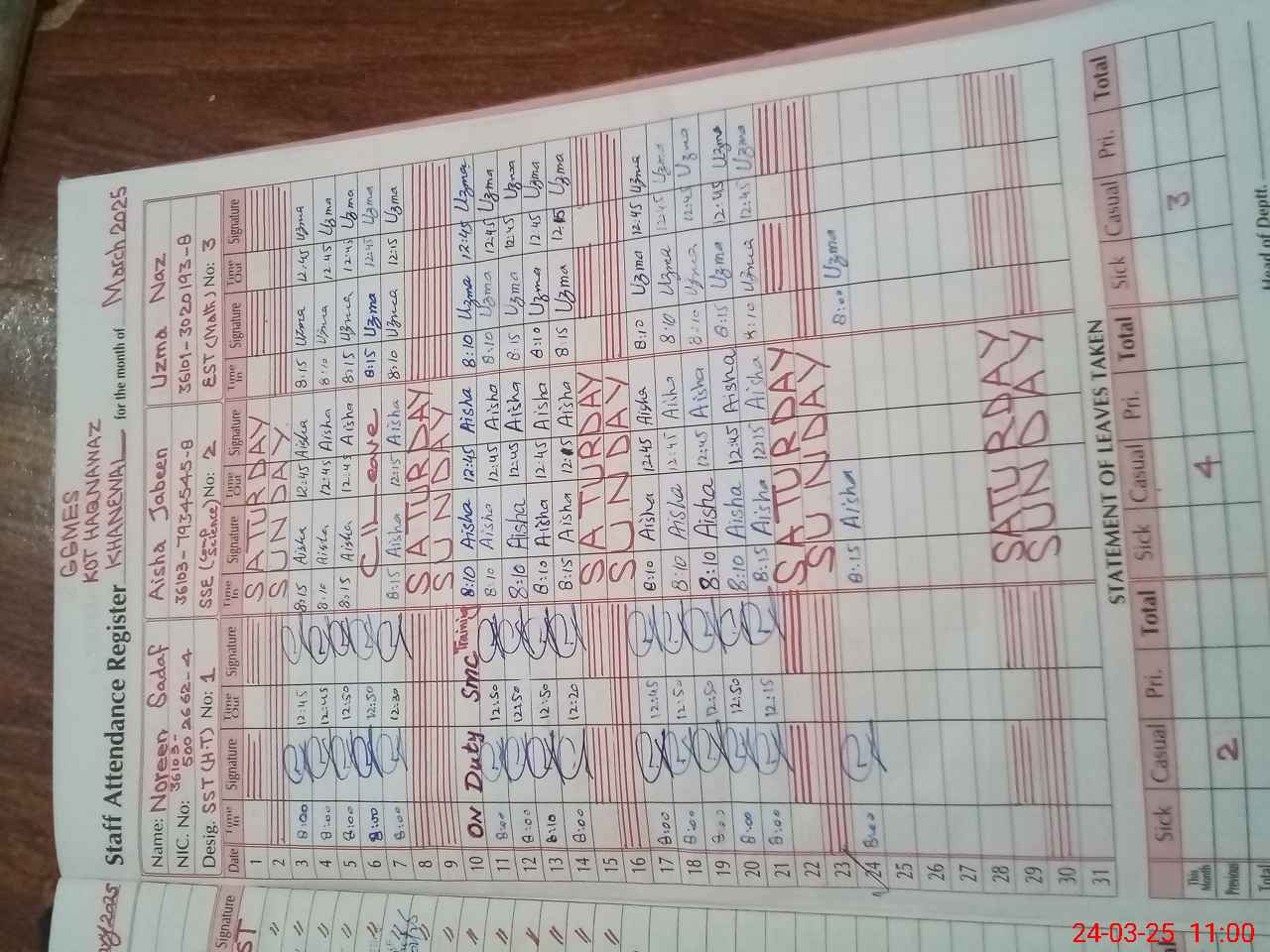 | 32**** | Sa**** Mu**** | PST | Regular | 3 | 0 | 0 | 0 | 0 | 0 | 0 | 0 | 3 | Casual |