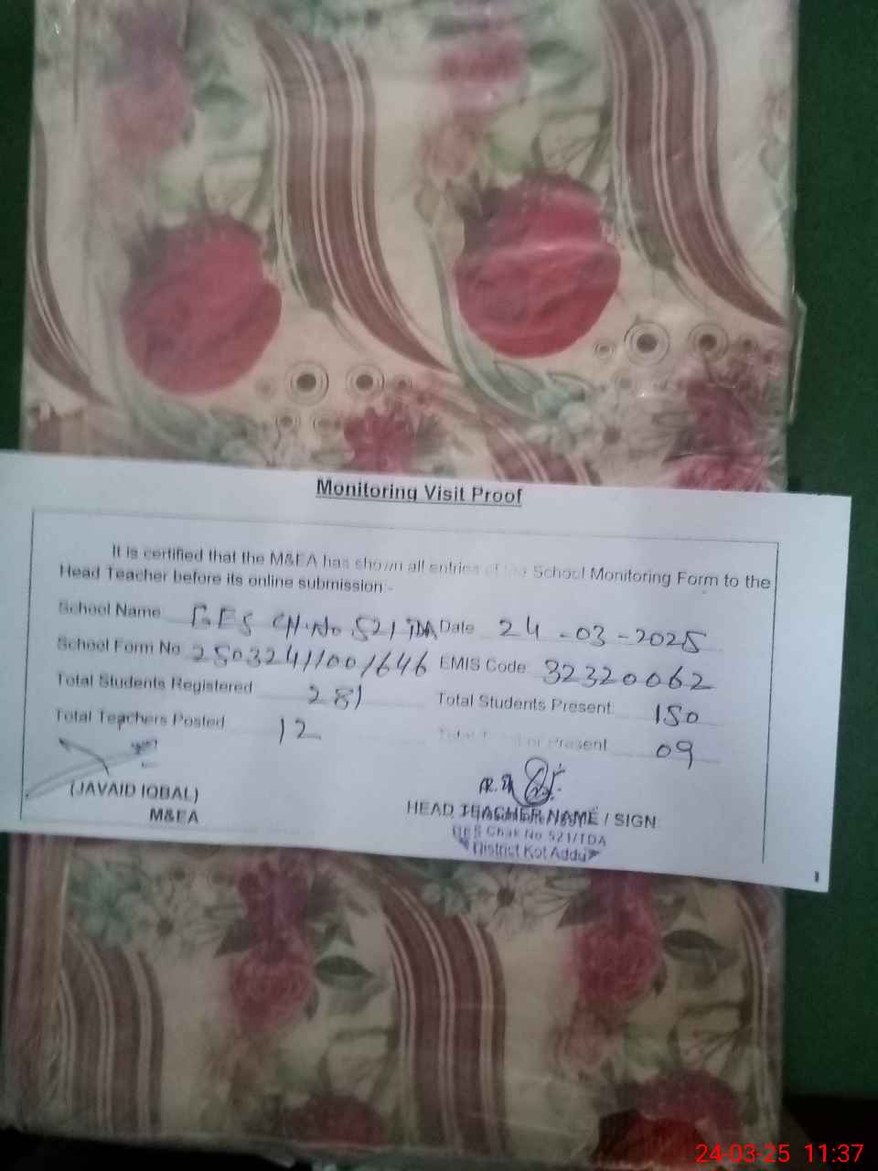 | EMIS Code: 32320062 | Name of School: GES CHAK NO.521 TDA | |||