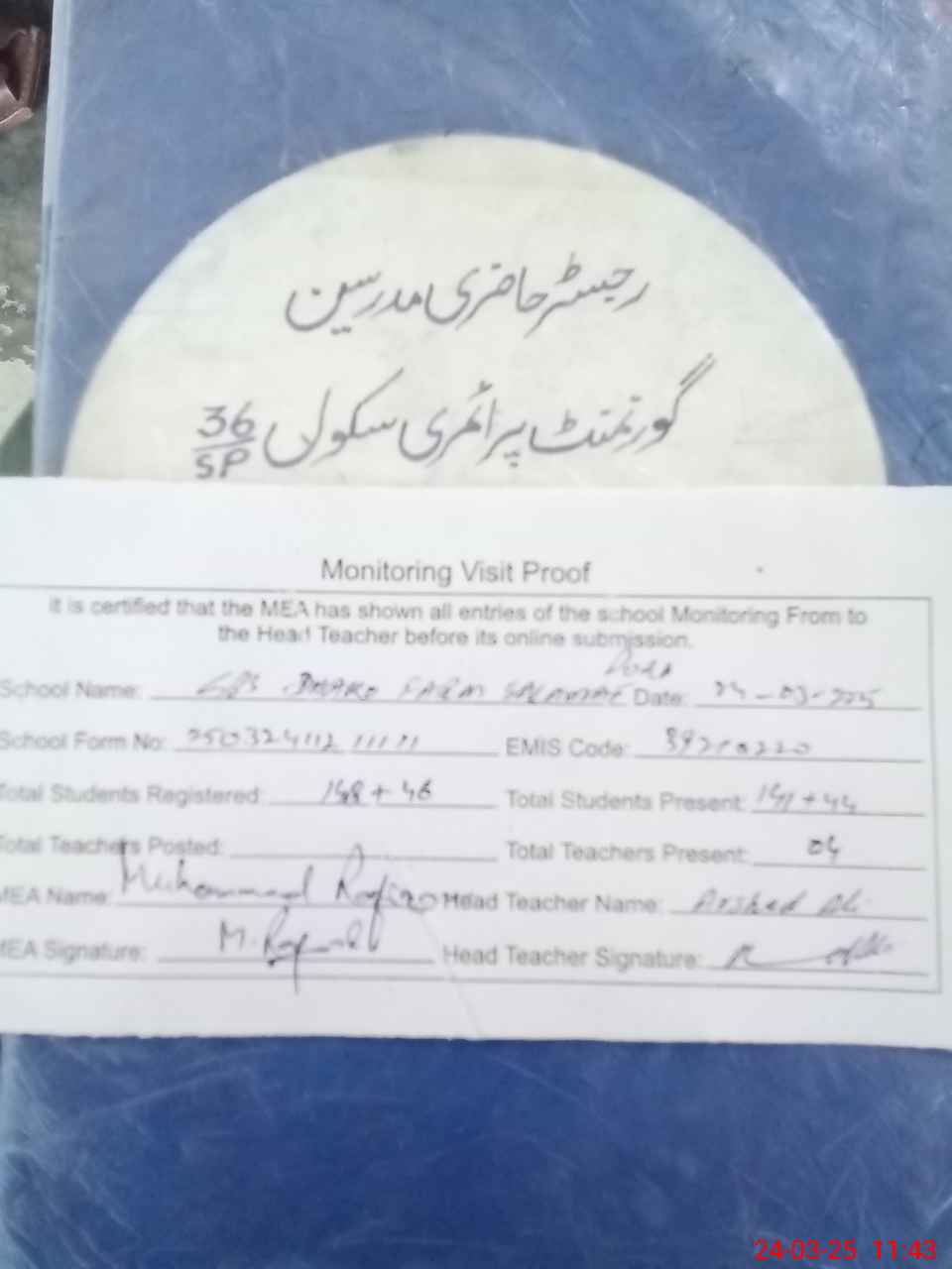 | EMIS Code: 39210220 | Name of School: GPS DHAKKO FARM CHAK NO. 36/SP SALAMAT PURA | |||