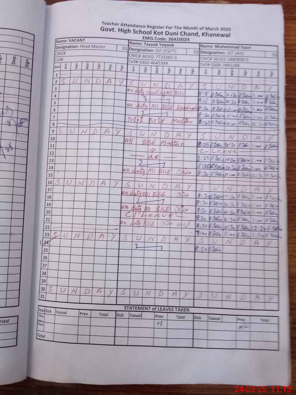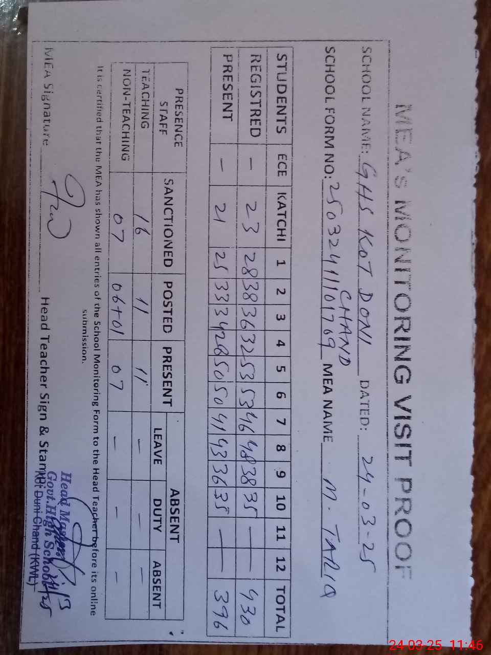 | EMIS Code: 36410024 | Name of School: GHS KOT DUNI CHAND, ABDUL HAKIM | |||