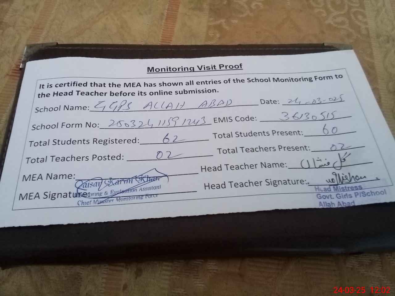 | EMIS Code: 36130515 | Name of School: GGPS ALLAH ABAD MULTAN | |||