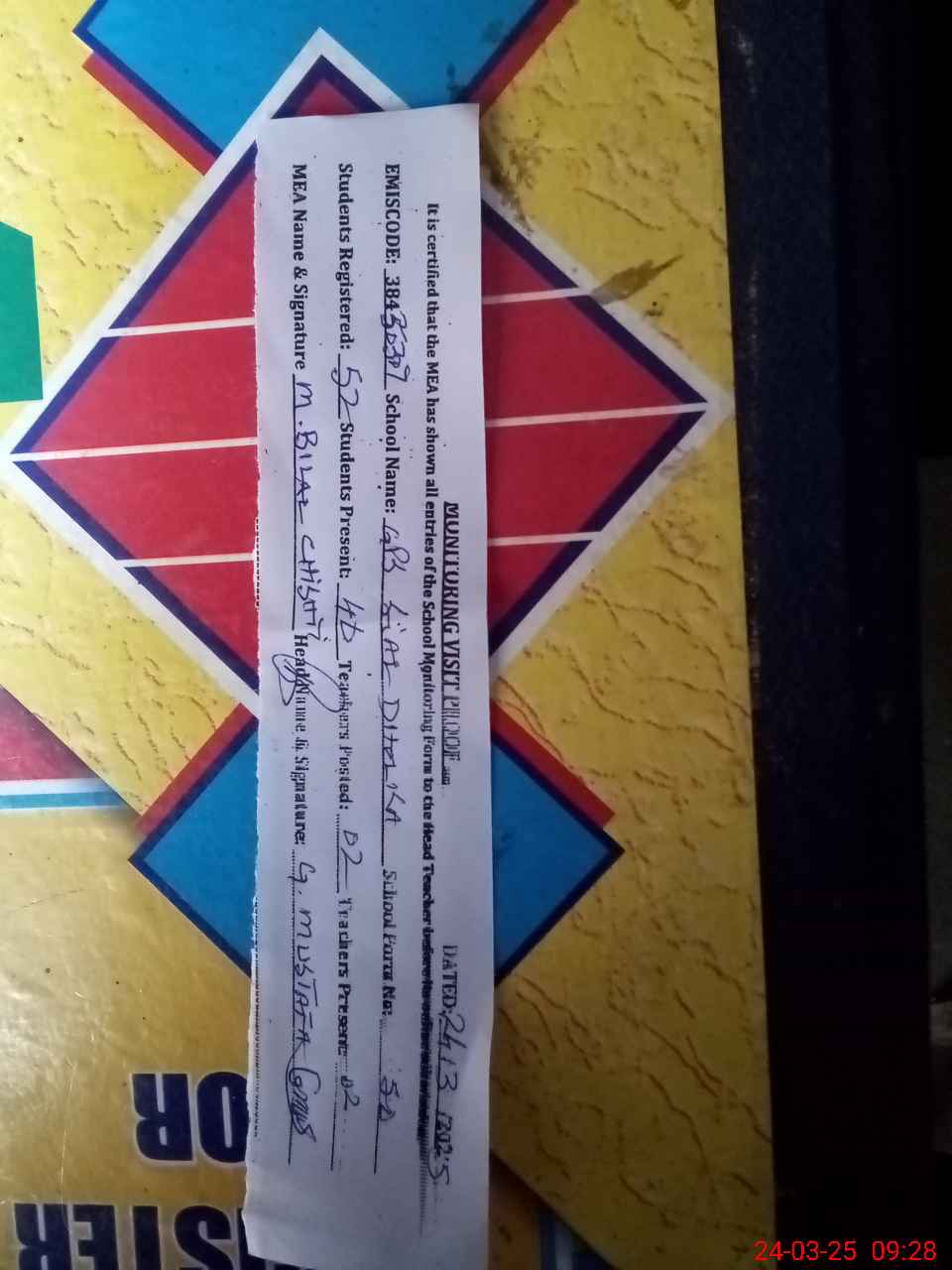 | EMIS Code: 38450307 | Name of School: GPS SIAL DHOLKA | |||