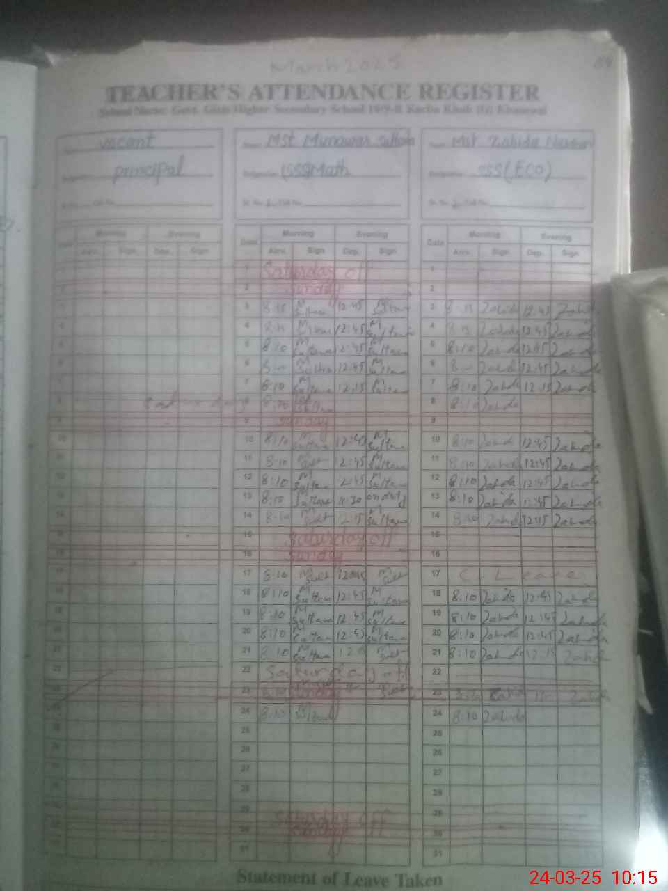 | 36**** | Am**** Gu**** | SST | Regular | 0 | 0 | 0 | 0 | 0 | 0 | 0 | 0 | 0 | Exam Duty |