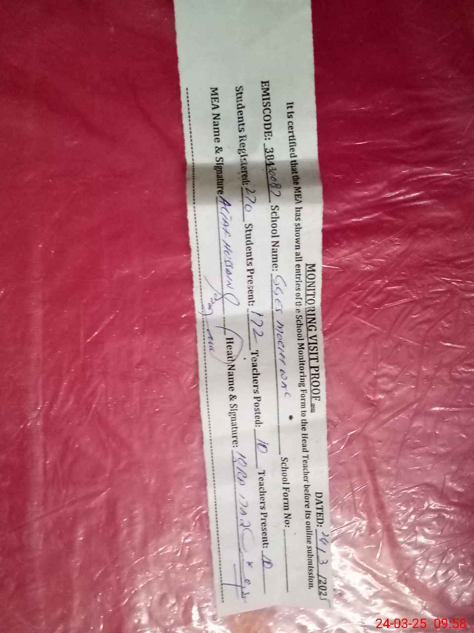 | Certified that this School was Inspected by the Undersigned MEA/DMO Today and the Information Stated Above is as Per Record. | |||||