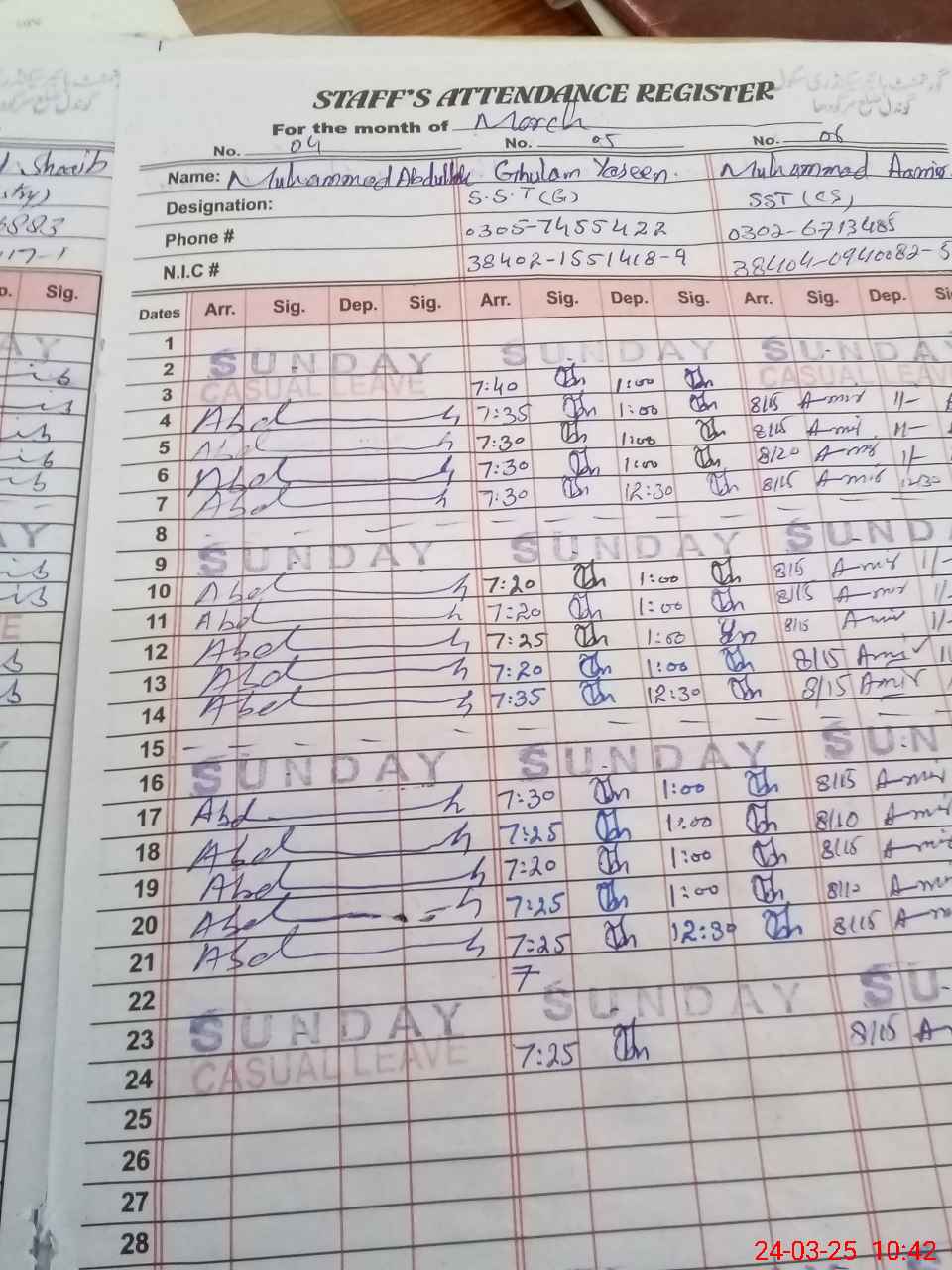 | 38**** | Ta**** Ab**** Za**** | Regular | 0 | 28 | 0 | 0 | 0 | 0 | 0 | 0 | 0 | Absent (Un-Authorized) | |