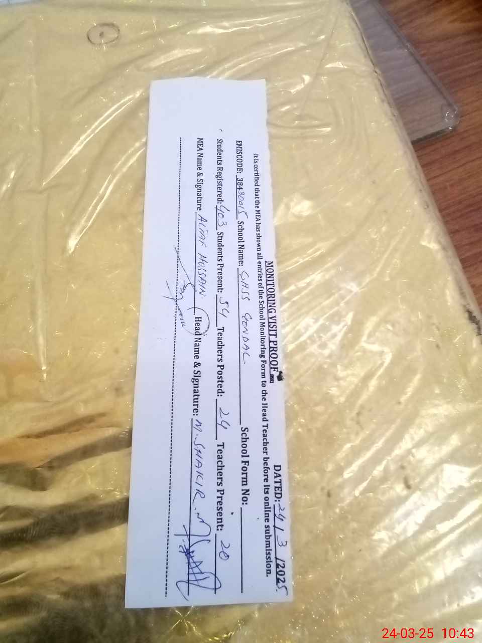 | EMIS Code: 38430015 | Name of School: GHSS GONDAL SARGODHA | |||