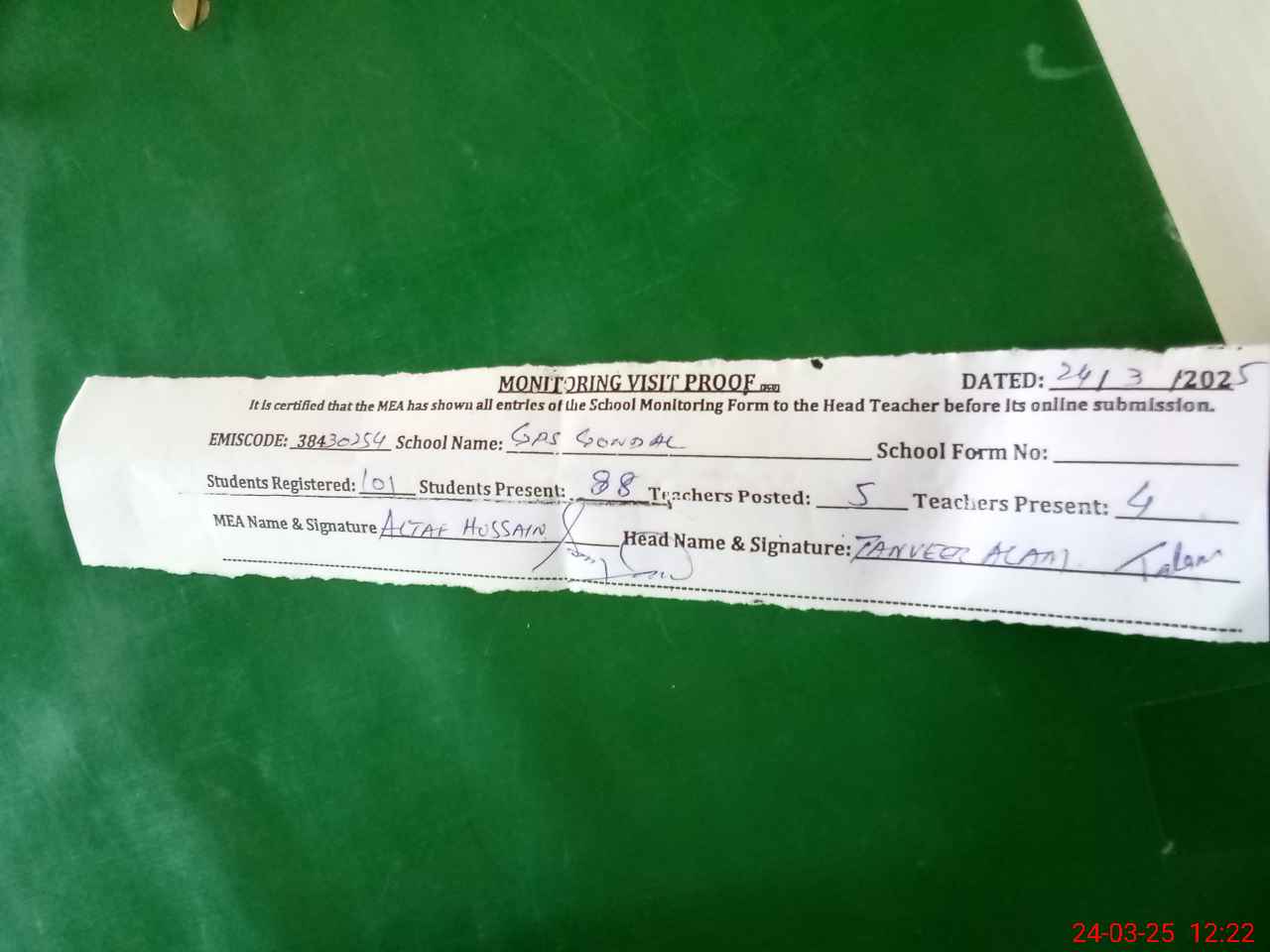 | EMIS Code: 38430254 | Name of School: GPS GONDAL | |||