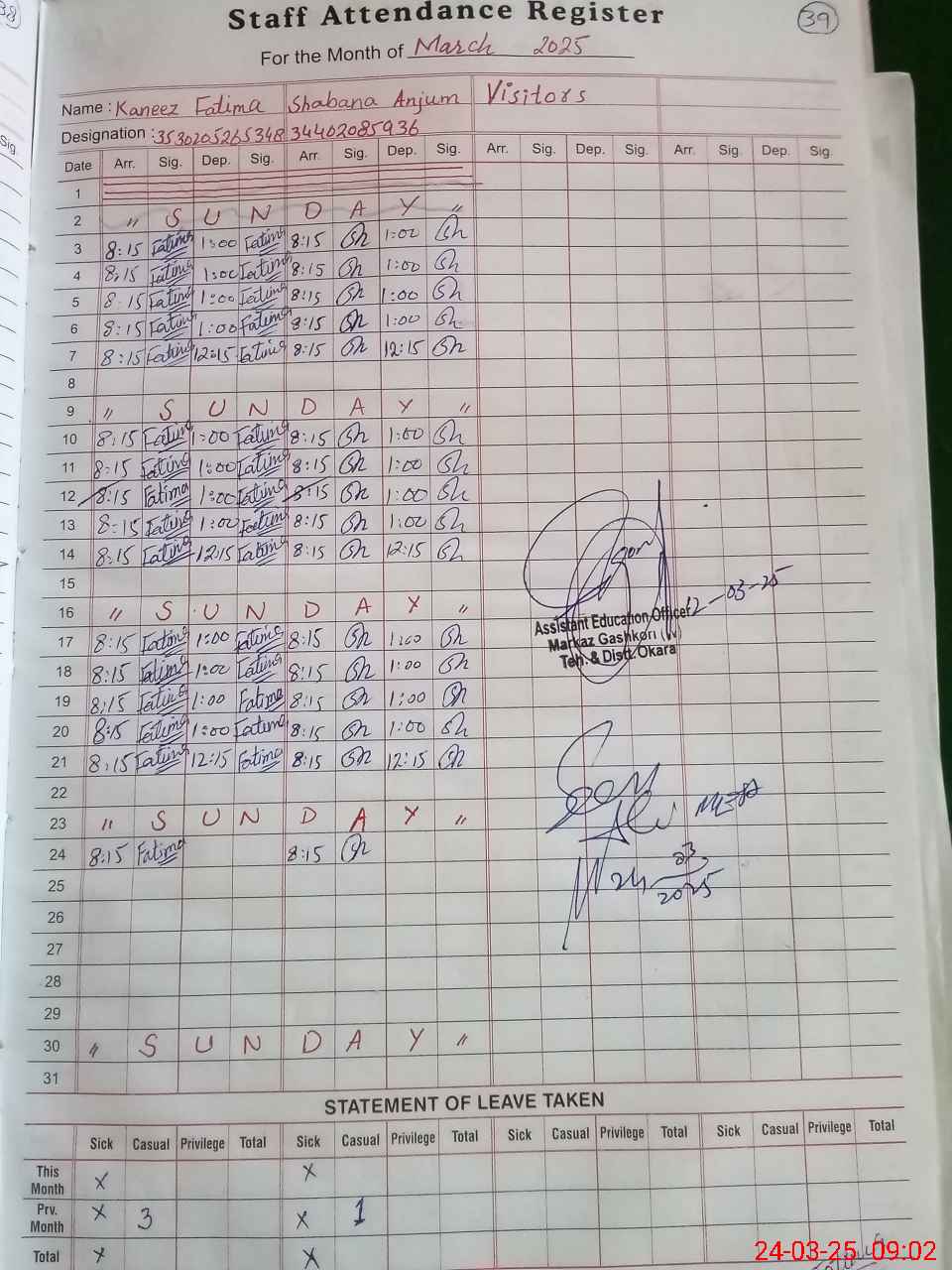 | Name: Ka**** Fa**** Designation: (School Headmaster's/Headmistress's) PST Phone/Cell Number: 03**** |