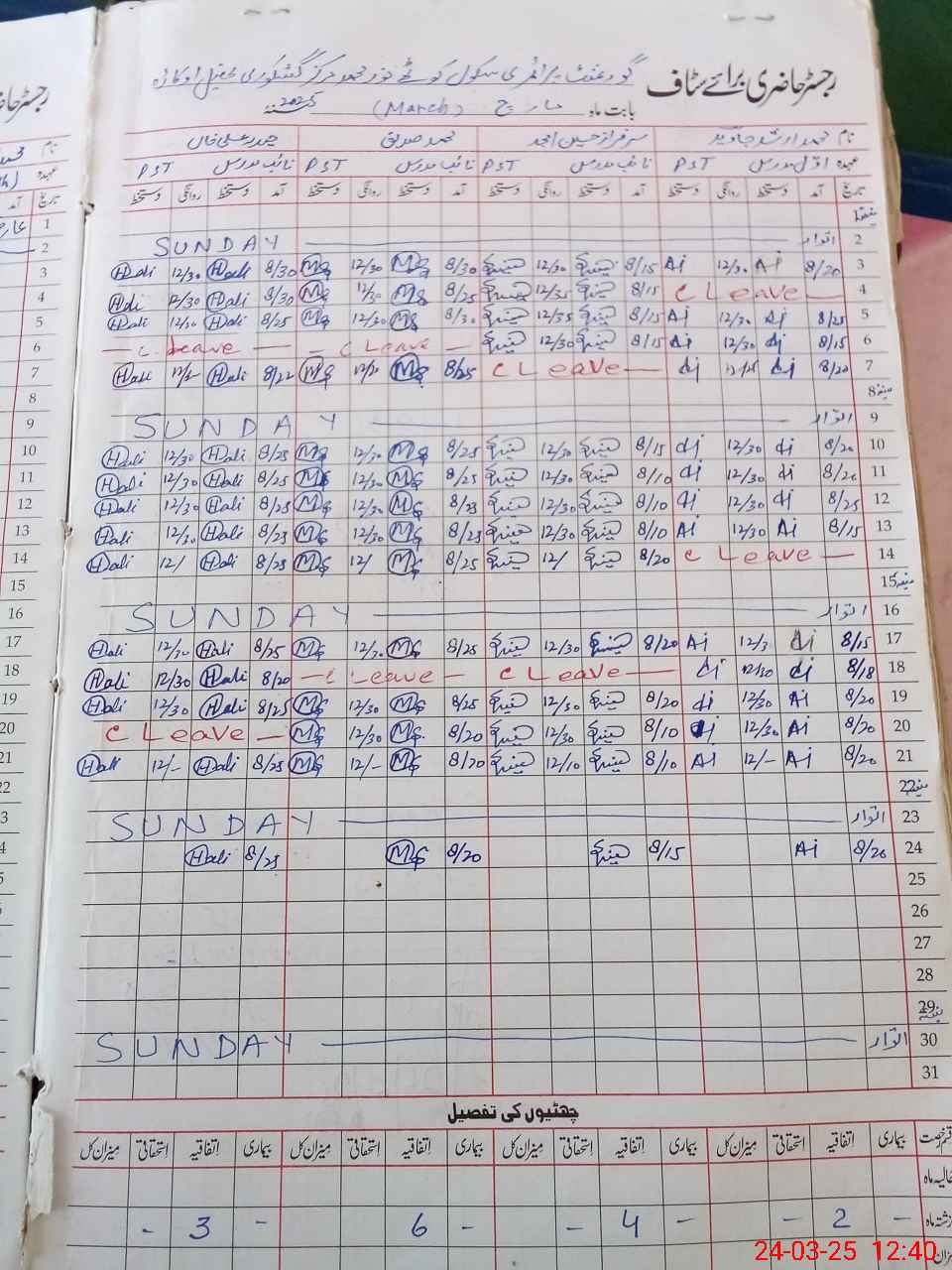 | Leave | Duty | Absent | Maternity | Medical | Ex- Pak |