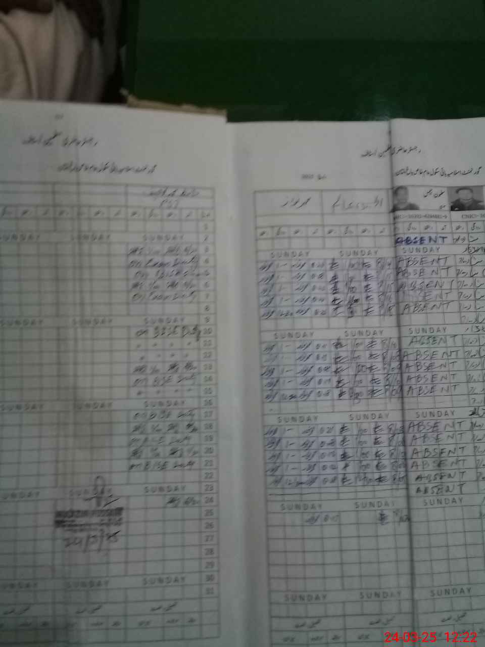 | CNIC | Full Name | Designation | R/C | Absence During Last Calender Month |