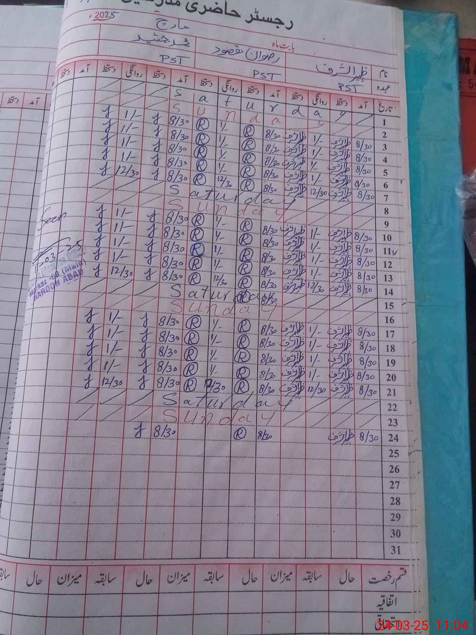 | CNIC | Full Name | Designation | R/C | Absence During Last Calender Month |
