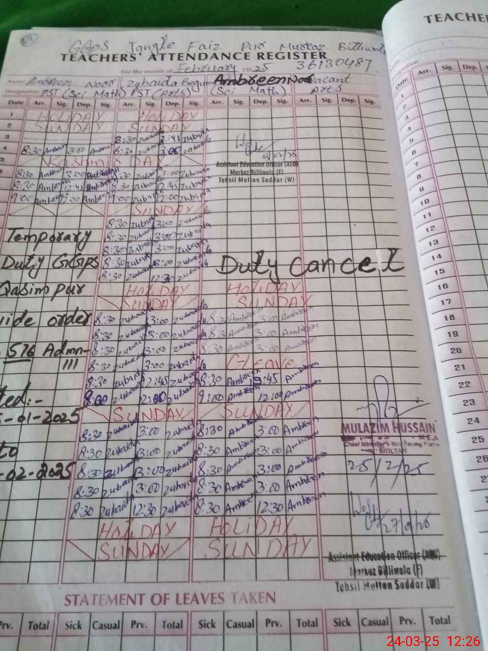 | Leave | Duty | Absent | Maternity | Medical | Ex- Pak |