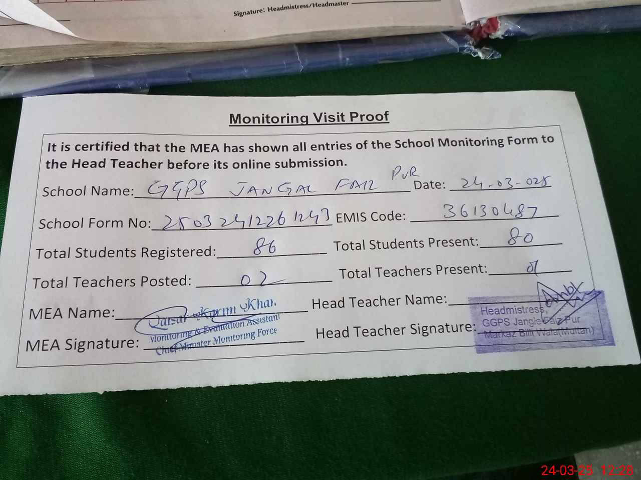 | EMIS Code: 36130487 | Name of School: GGPS JANGLE FAIZ PUR | |||