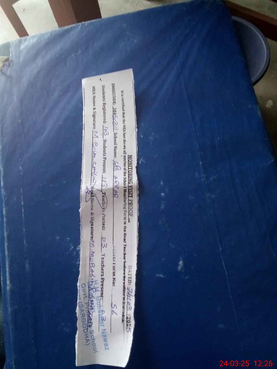 | Attendance Register | Head Teacher | MEA with School | Visit Proof |