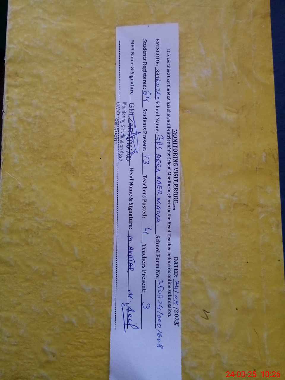 | EMIS Code: 38460260 | Name of School: GPS DERA MERMANA | |||