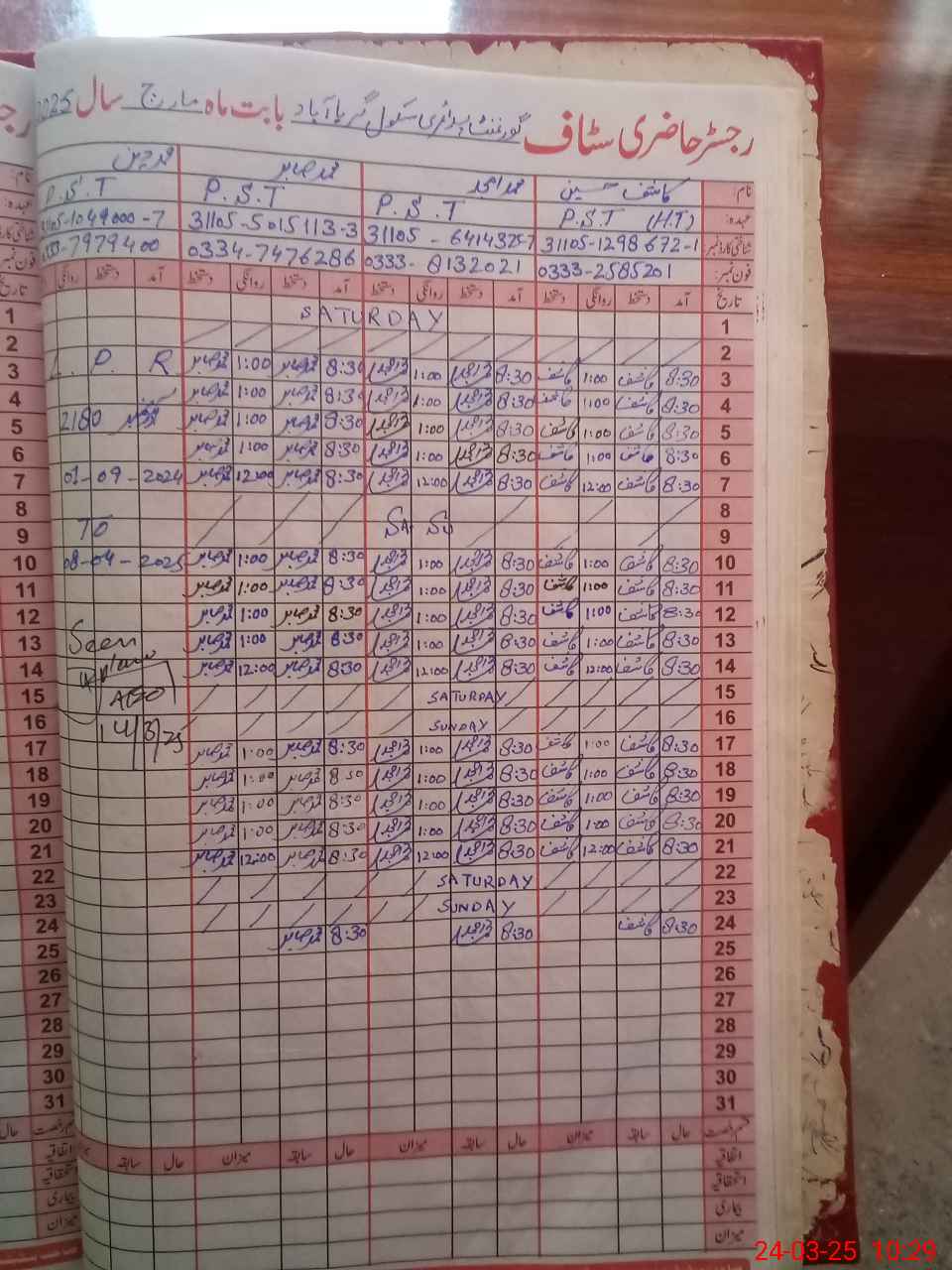 | Name: Ka**** Hu**** Designation: (School Headmaster's/Headmistress's) PST Phone/Cell Number: 03**** |