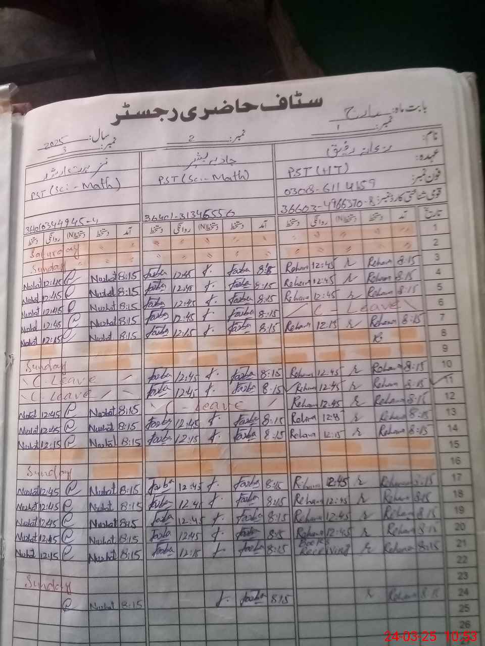 | Name: RE**** RA**** Designation: (School Headmaster's/Headmistress's) PST Phone/Cell Number: 03**** |