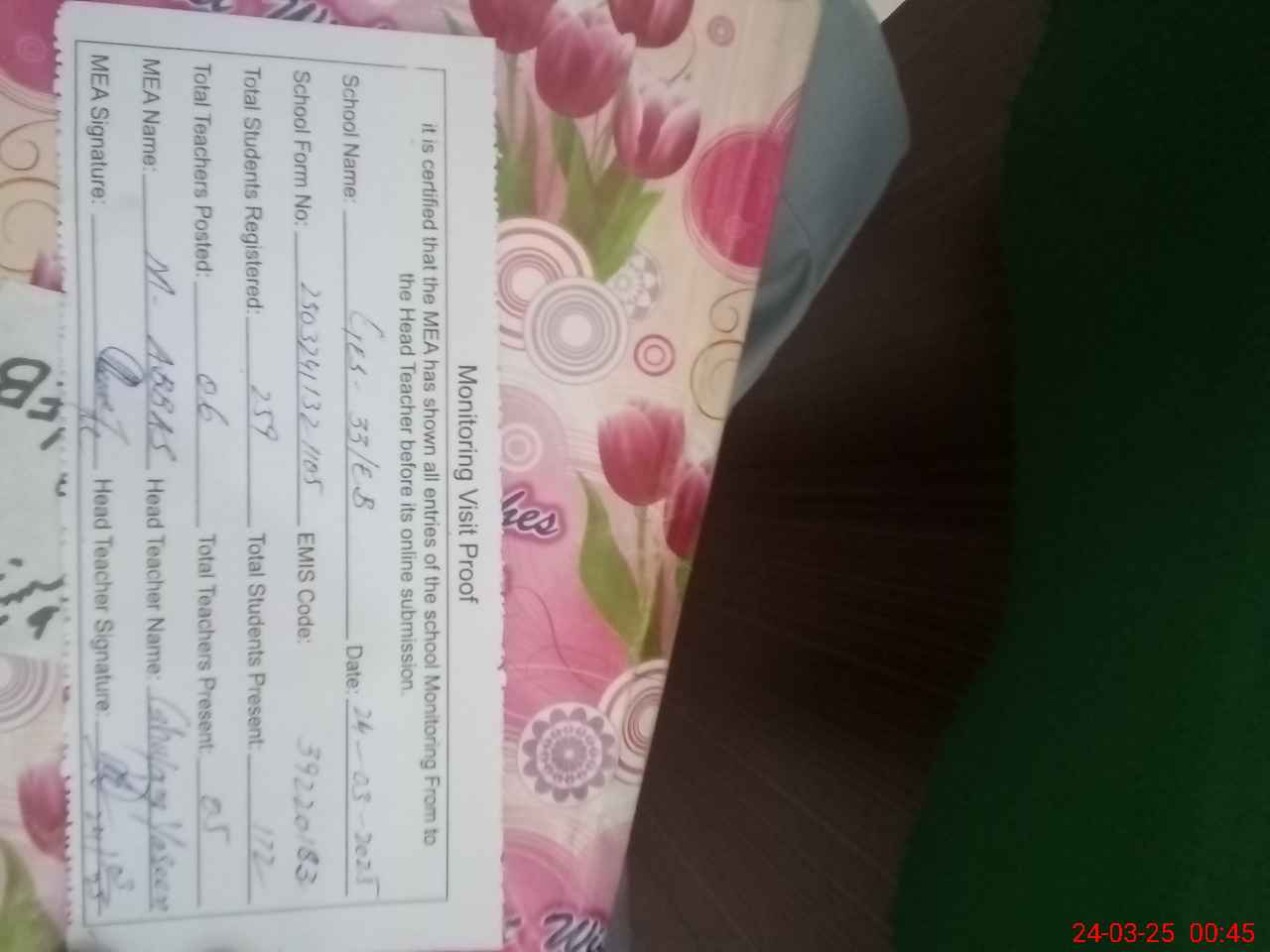 | Certified that this School was Inspected by the Undersigned MEA/DMO Today and the Information Stated Above is as Per Record. | |||||