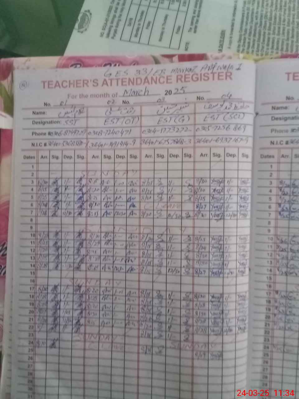 | Name: RA**** AL**** Designation: (School Headmaster's/Headmistress's) EST (HM) Phone/Cell Number: 03**** |