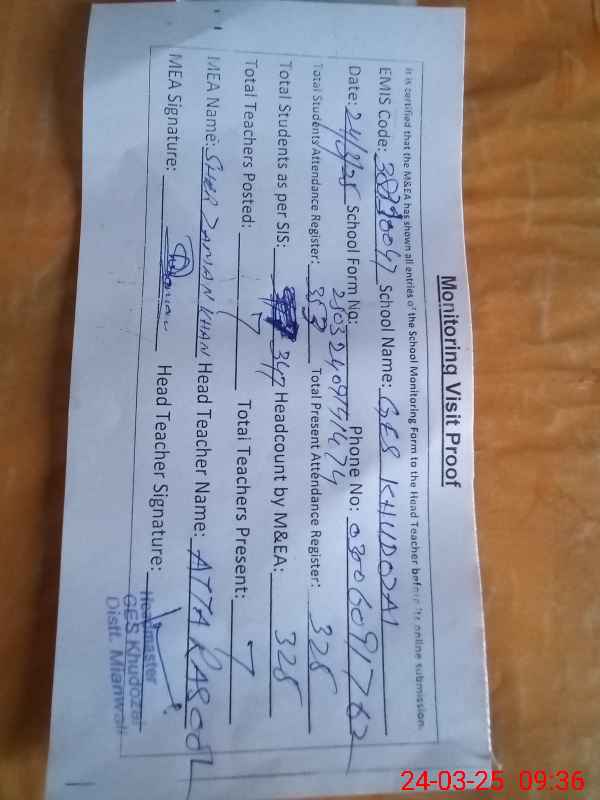 | EMIS Code: 38310047 | Name of School: GES KHUDOZAI | |||