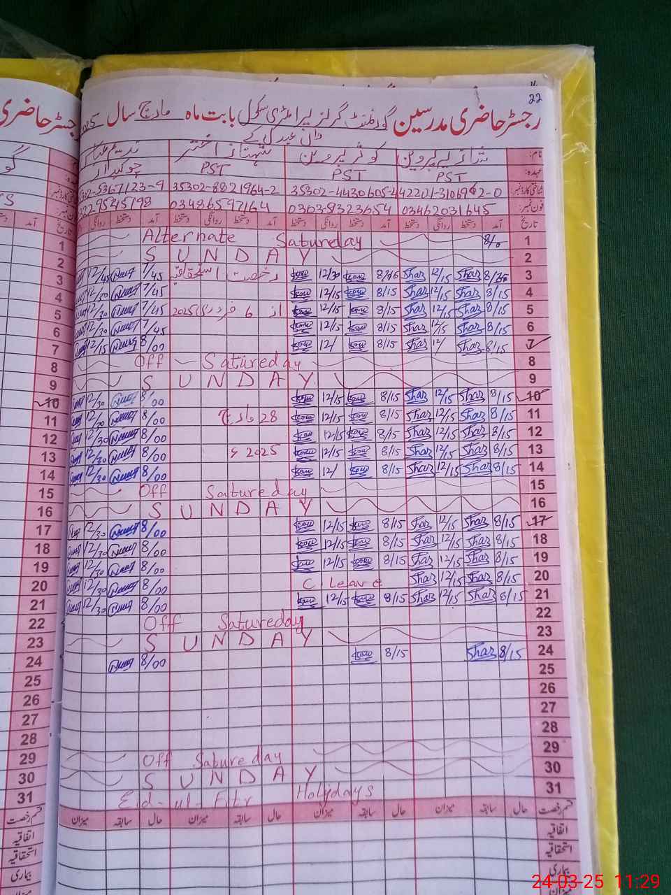 | Name: Sh**** Pe**** Designation: (School Headmaster's/Headmistress's) PST Phone/Cell Number: 03**** |