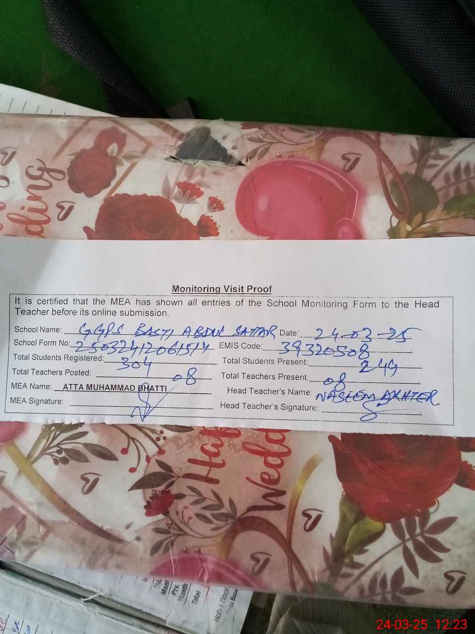 | EMIS Code: 39320508 | Name of School: GGPS BASTI ABDUL SATTAR | |||