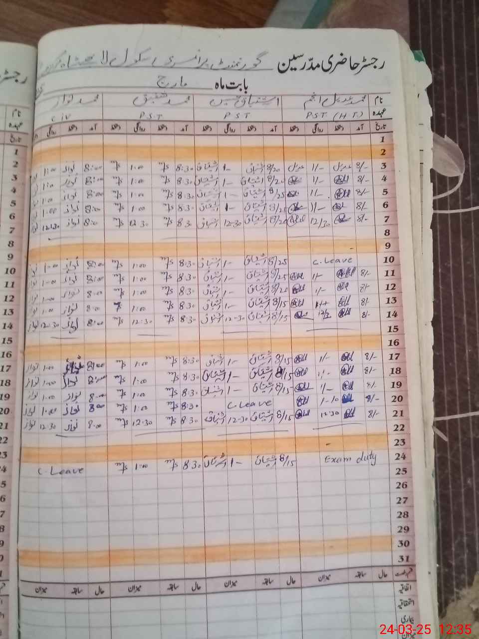 | Leave | Duty | Absent | Maternity | Medical | Ex- Pak |