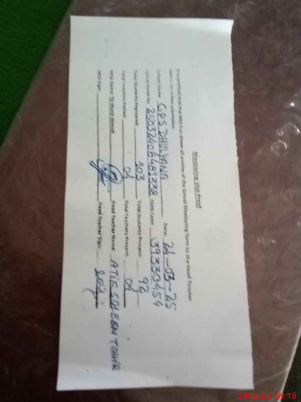 | Name: At**** Sa**** Ta**** Designation: (School Headmaster's/Headmistress's) PTC/JV Phone/Cell Number: 03**** |