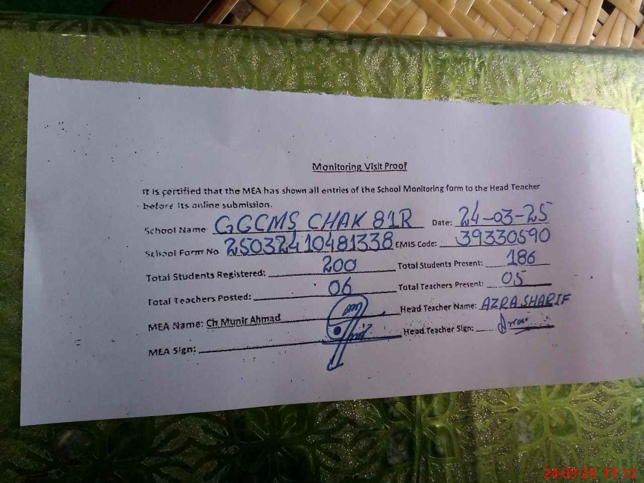 | EMIS Code: 39330590 | Name of School: GGCMS CHAK NO. 8/1-RA | |||